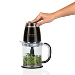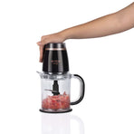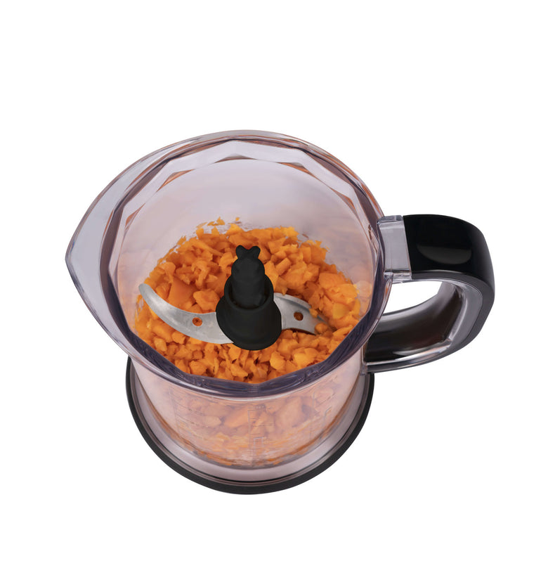 Der 1200-ml- große Behälter kann mehr Lebensmittel auf einmal zerkleinern und erleichtert durch seine praktische Form das leichte Entleeren.