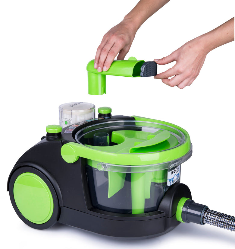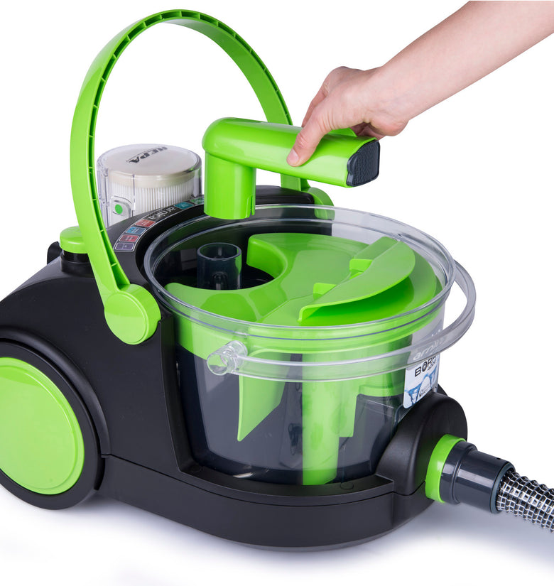 Durch das spezielle Wasserfilter-System und einer Motorleistung von 850W sammelt und saugt der Elektrostaubsauger jeglichen Staub in Ihrer Umgebung auf.