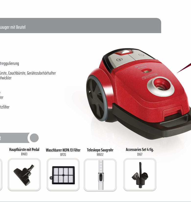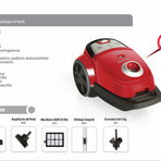 Ein hocheffizienter und zuverlässiger 750W Staubsauger mit Beutel, der keinen Staubkorn zurücklässt. Inklusive 4-teiligem Zubehörset.