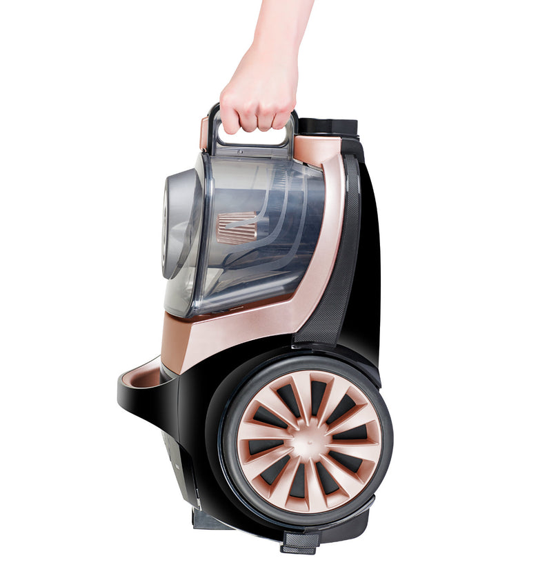 Beim Tragen des Staubsaugers sorgt der hochwertige Mechanismus am Griff für einen sicheren Verschluss.